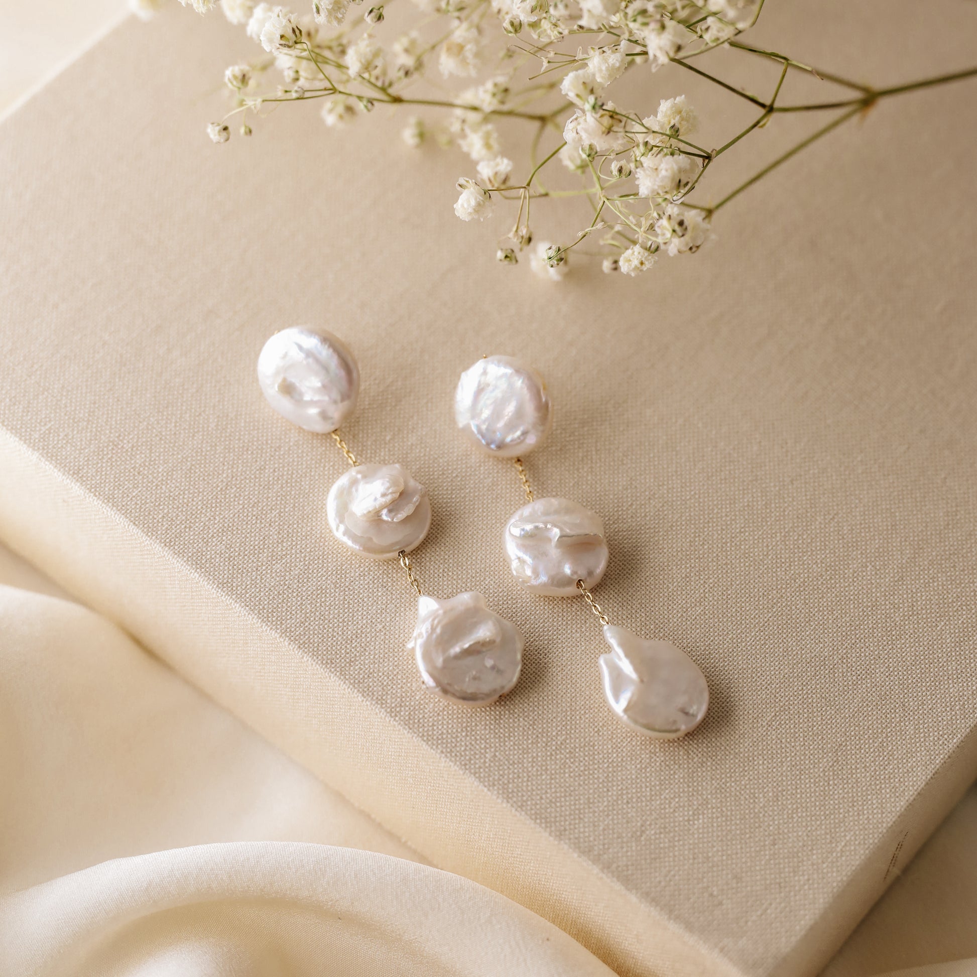 Elevate your wedding look with our Pearl Earrings! Designed for the modern bride, these stunning drop earrings are the perfect addition to your bridal jewelry set. The long, gold dangle features will add a touch of elegance to your special day. They also make a thoughtful Mother's Day gift!