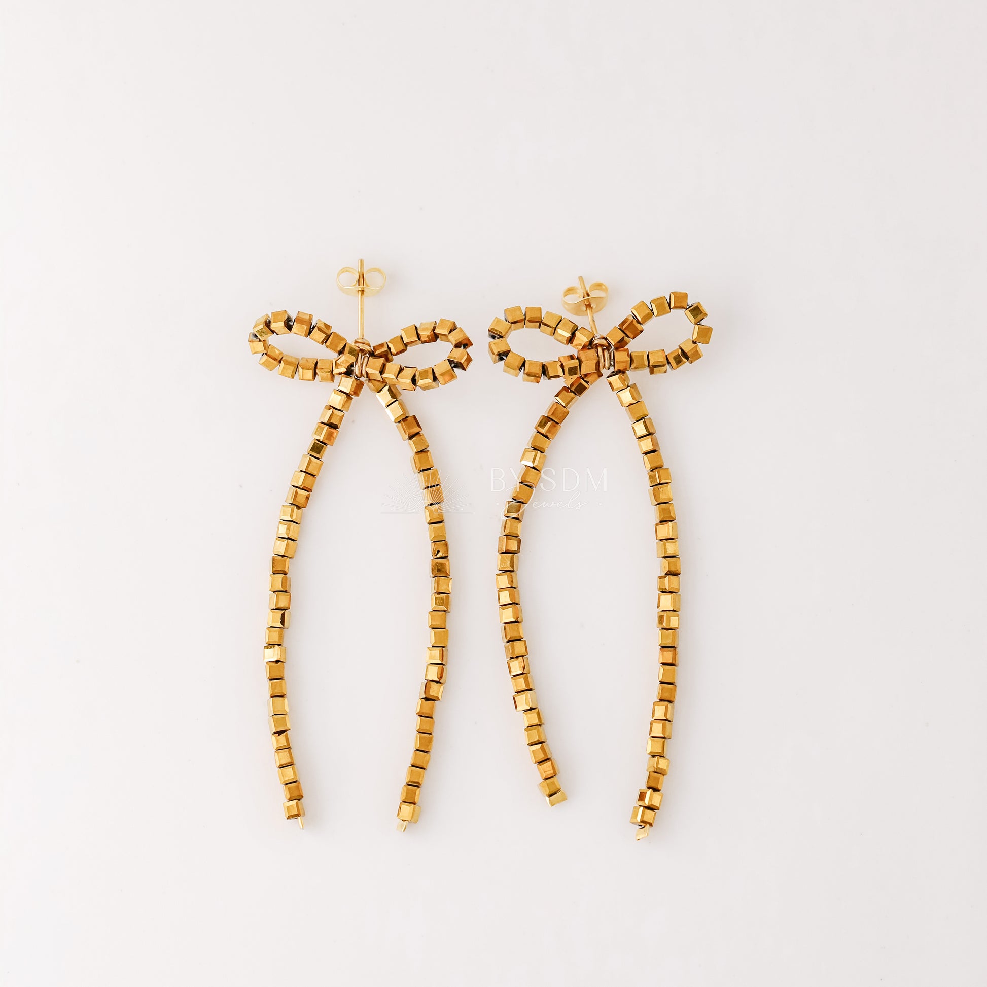 These beautiful Ribbon Bow Stud Earrings in Stainless Steel come in Silver or Gold and add a dainty touch to any outfit. Perfect for weddings or as a bridesmaid's gift, the silver bow drop earrings will elevate any jewelry collection. Make a statement with these elegant bow earrings.