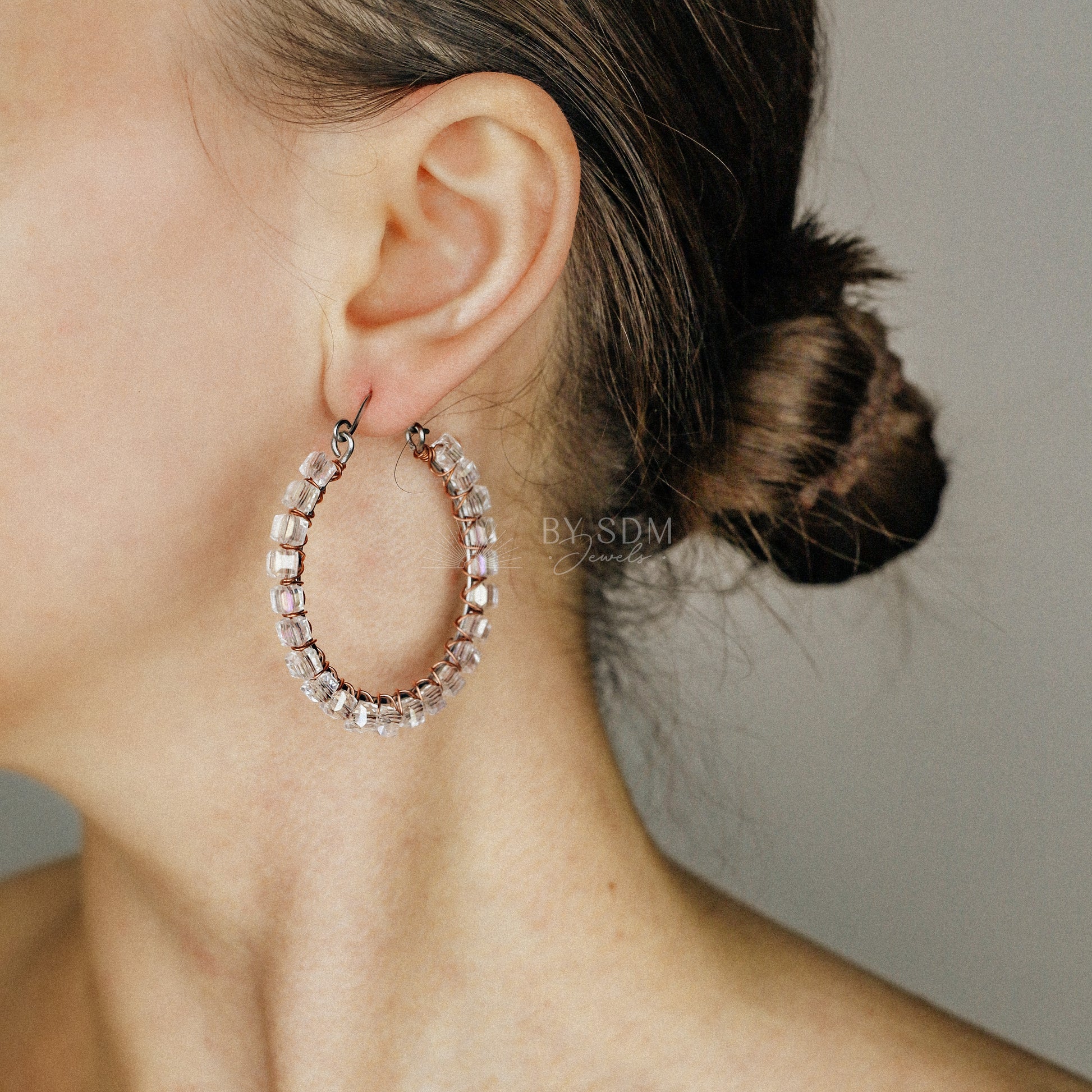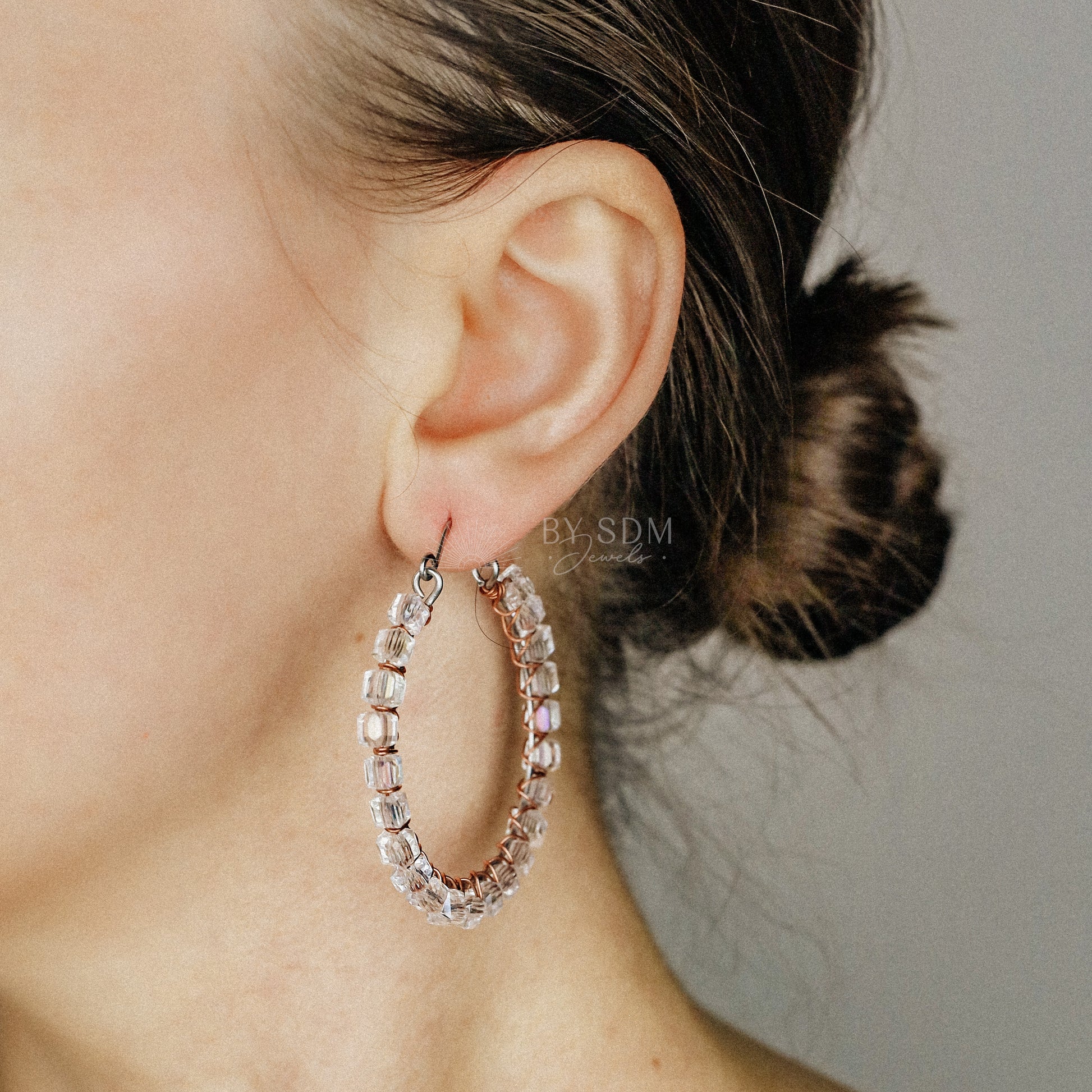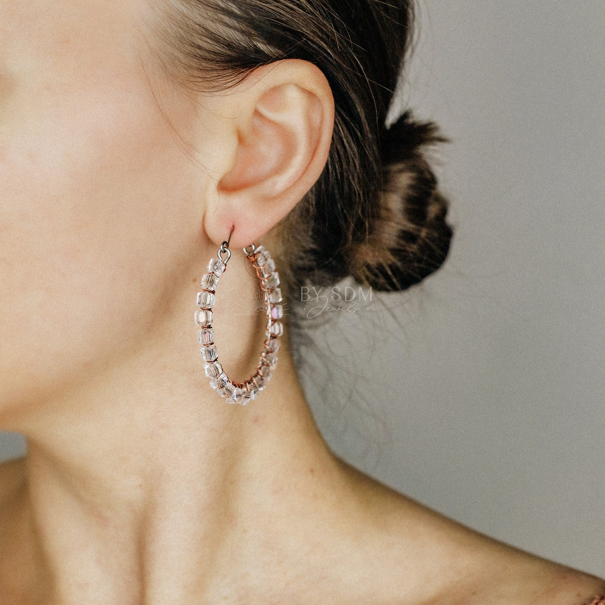 • Material: High Quality Stainless Steel and Clear Crystals• Size of the earrings 50mm