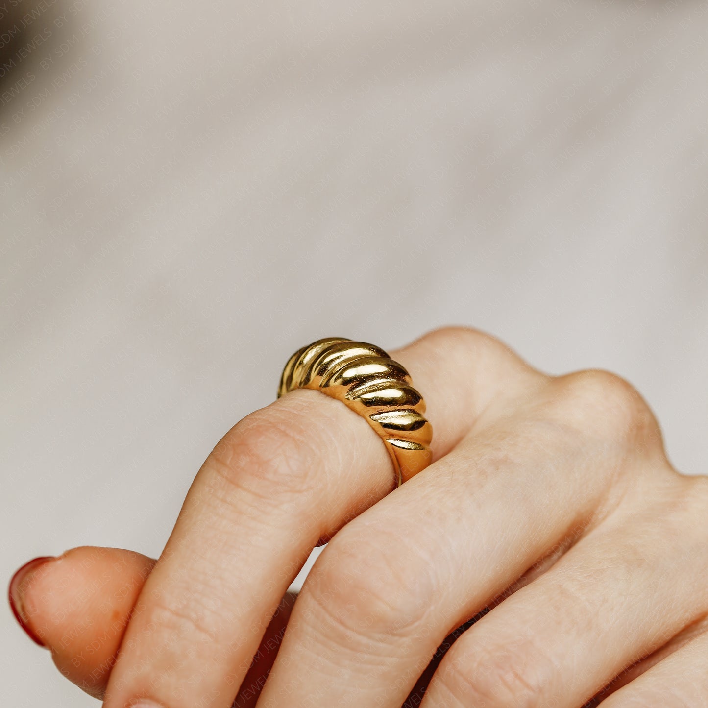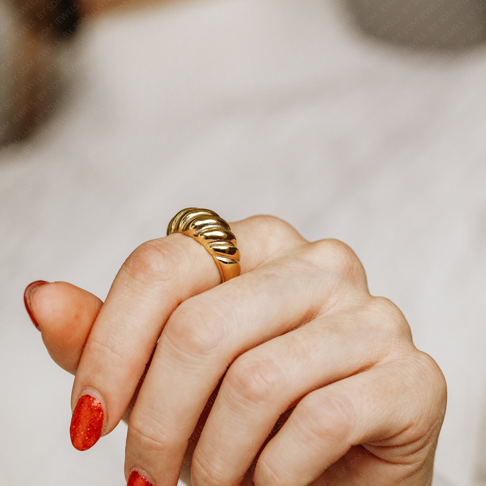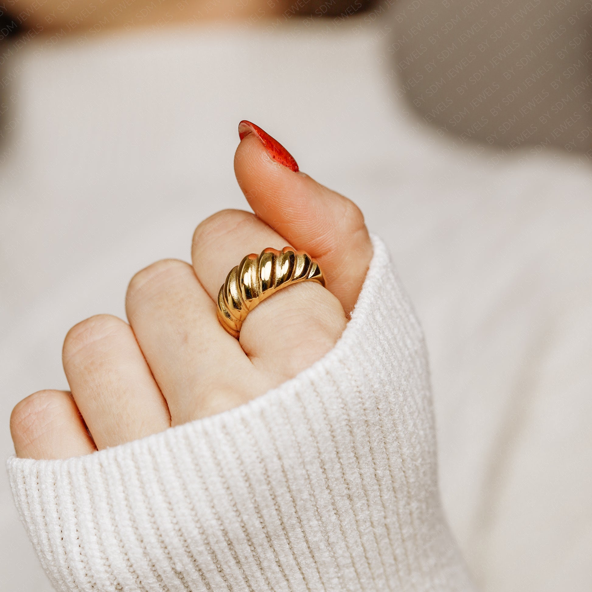 Trendy, and gorgeous croissant/dome ring is the perfect statement accessory! It's super high-quality and looks beautiful on.