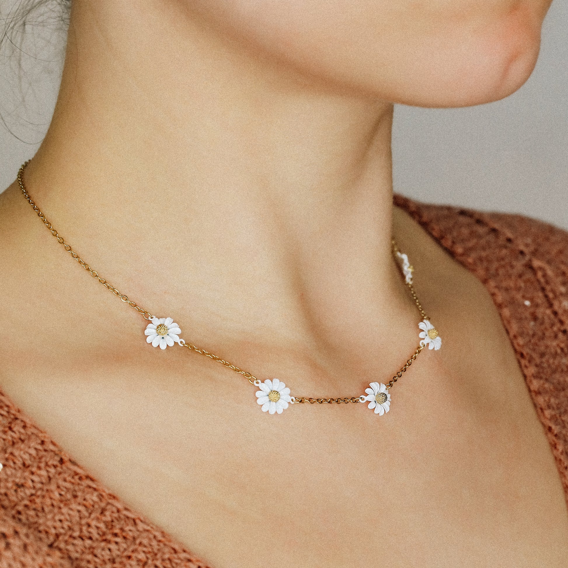 Bring some sunshine into your life with our Station Daisy Necklace! This delicate necklace features charming daisies that will add a touch of whimsy to any outfit. With multiple daisy charms, this necklace is perfect for nature lovers and flower enthusiasts. Add our Tiny Daisy Necklace to complete the look!
