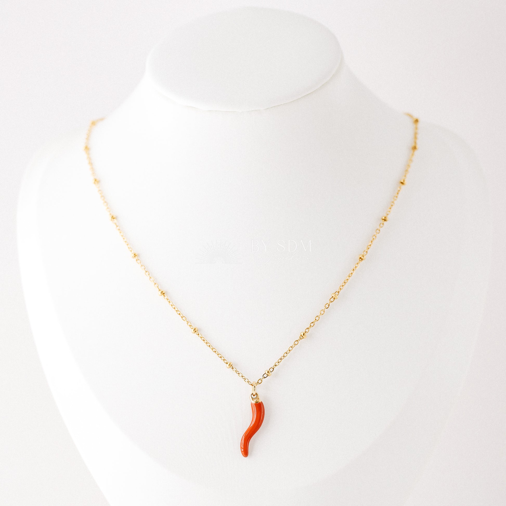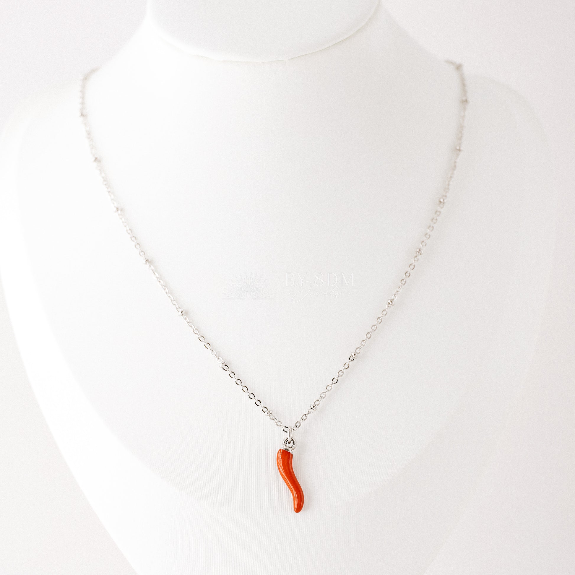 Get lucky with this Italian Cornetto Horn Necklace. Featuring a charming red horn on a satellite chain, this piece is perfect for warding off any bad vibes. Made in Italy, it's a luckycharm cornicello that will bring you good fortune.