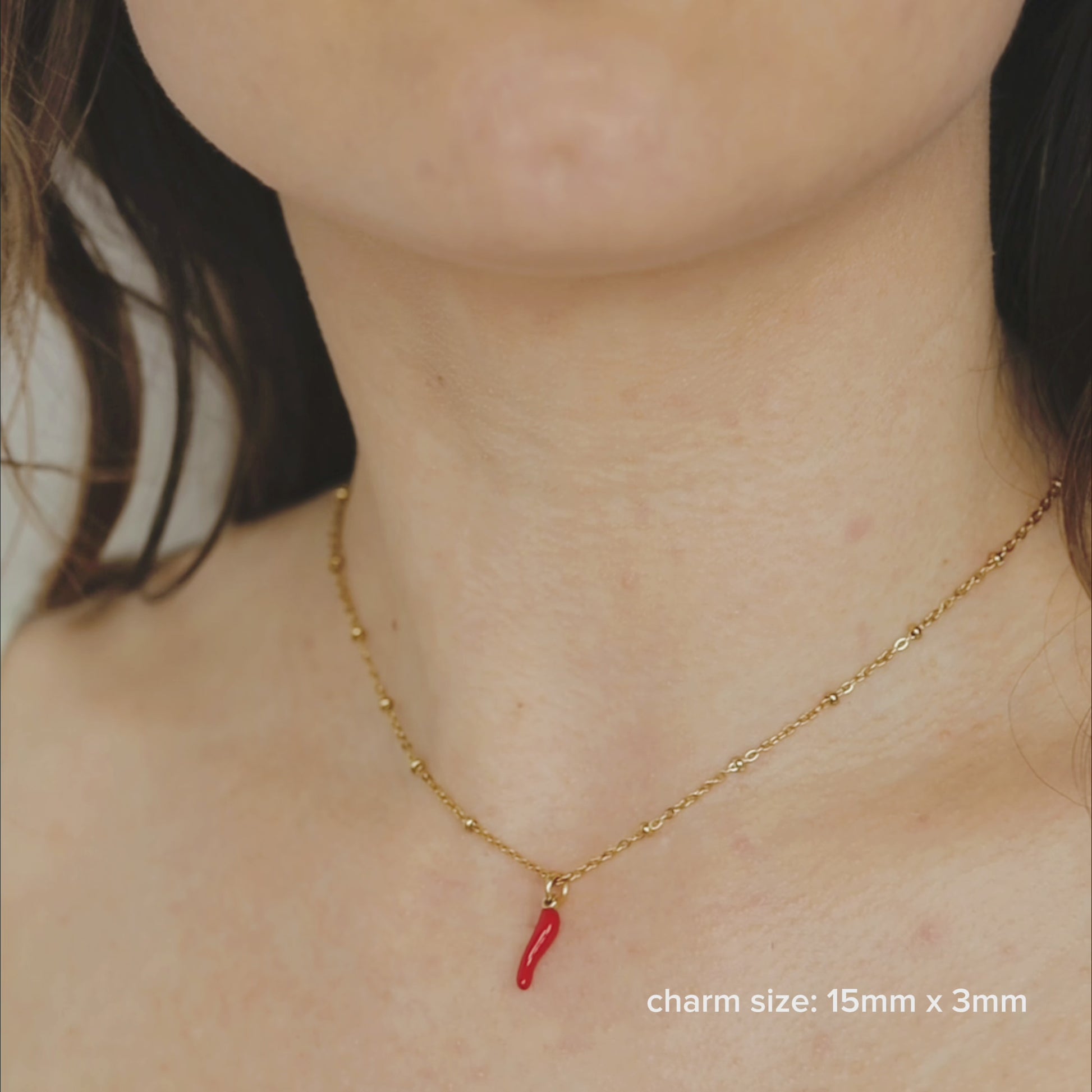Get lucky with this Italian Cornetto Horn Necklace. Featuring a charming red horn on a satellite chain, this piece is perfect for warding off any bad vibes. Made in Italy, it's a luckycharm cornicello that will bring you good fortune.
