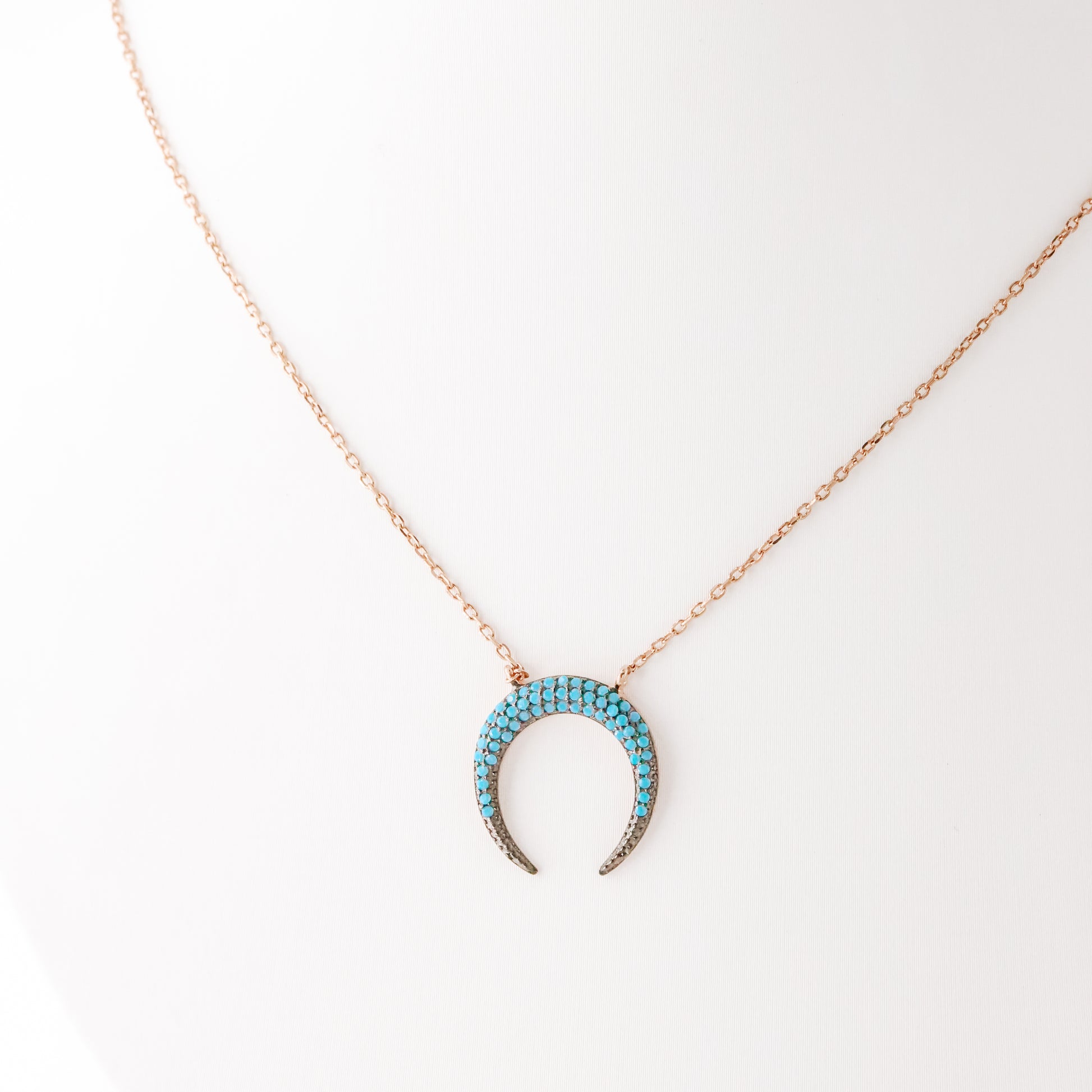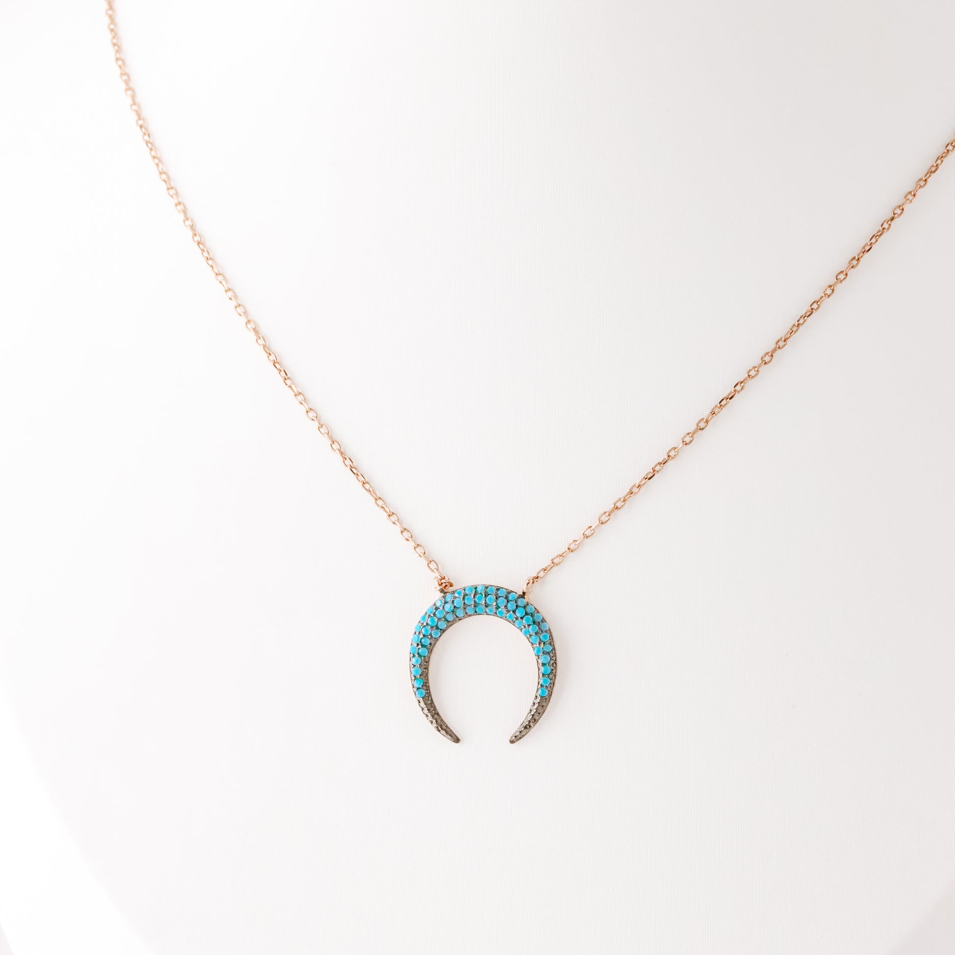 Be bold and channel your inner sass with this double horn necklace! Crafted with turquoise zircon and set in rose gold, it's sure to get heads turning. Show off this showstopper and be the envy of all your friends!